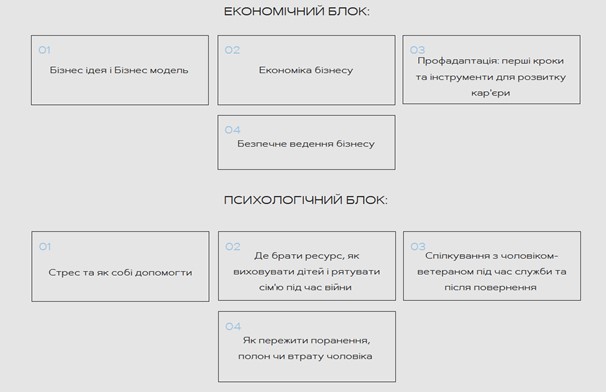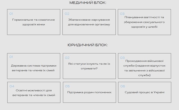 Кожна лекція розроблена на основі апробованих практик взаємодії з дружинами ветеранів.