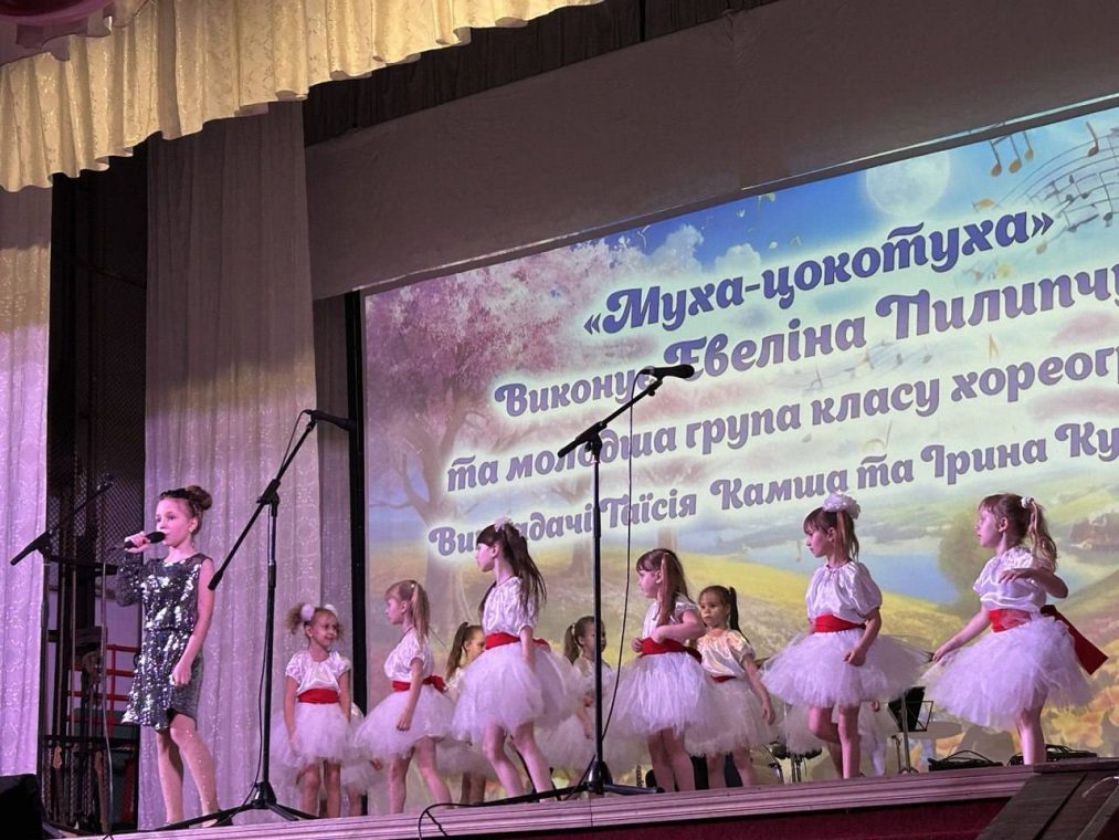 “Я веду концерт вперше. Хвилювалася, але мені сподобалося. Я ходжу до школи мистецтв до першого класу на вокал. Сьогодні я ще виконувала пісню «Муха-цокотуха». Номер ми готували разом із молодшою групою класу хореографії. Я вже не раз її співала, давно готувалася”.