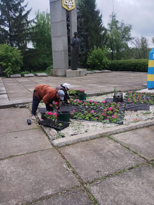Саме тому ми й активно відкриваємо флористичний сезон на території громади. На замовлення Управління житлово-комунального господарства фахівці нашої підрядної організації почали роботу у селах. Зокрема чималою насиченою композицією віднині виділяється Обеліск слави у Кропивні – важливе й сакральне тут місце.