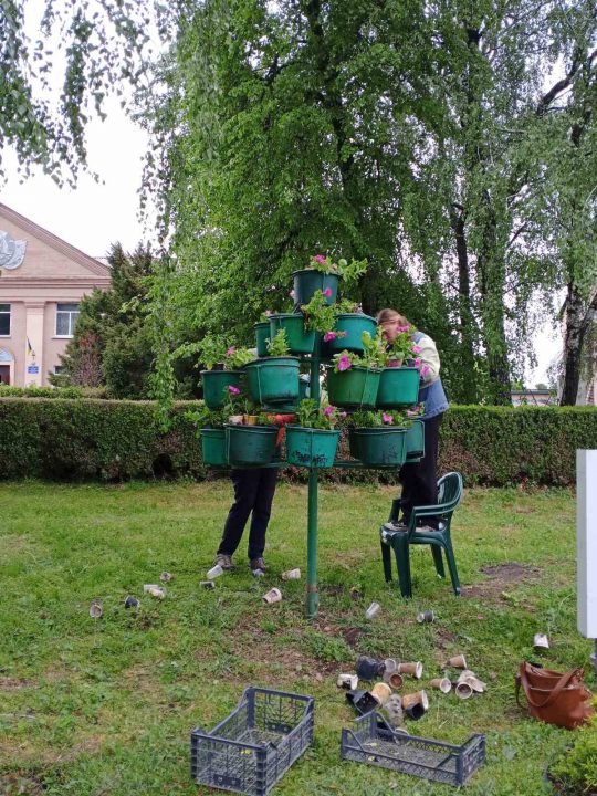 Також свіжими барвами тепер майорить центральна частина Деньгів. Окрім оновлення тротуарної зони, свій місію розпочали й наші імпровізовані “квітникові дерева” – гармонійне поєднання металу та флори.