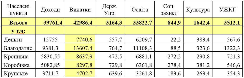Бюджети інших громад (Іркліївська сТГ та Великохутірська сТГ) – 6 640,4 тис грн.