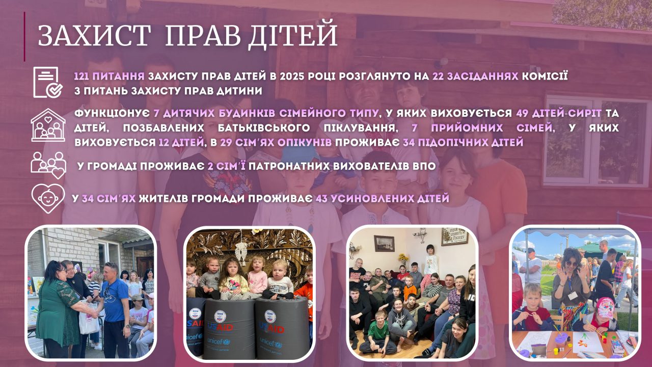 У 2024 році на території громади посиротіло 16 дітей, у 2025 році – 4. Всі посиротілі діти влаштовані в сімейні форми виховання.